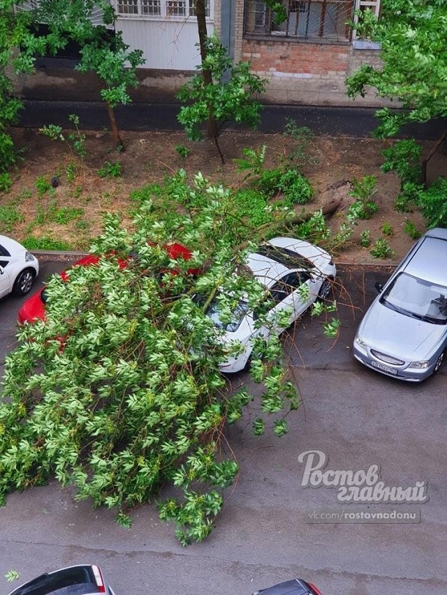 На улице Филимоновской жителям повезло меньше. Здесь упавшее дерево повредило припаркованный автомобиль.