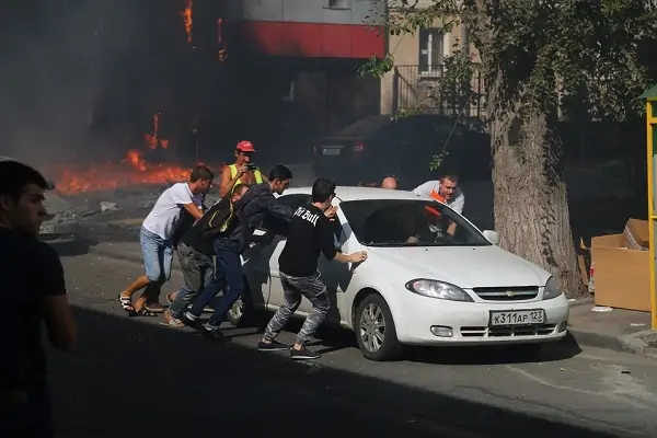 Напомним, информация о возгорании здания поступила в экстренные службы в 13:53 21 сентября. Судя по видео с места ЧП, огонь вспыхнул между вторым и третьим этажами отеля.
