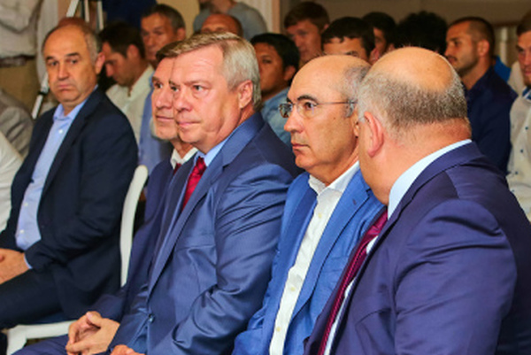 Очень показательная фотография. На лицах всё написано. Слева направо: член совета директоров ФК «Ростов» Али Узденов, првый замгубернатора Игорь Гуськов, губернатор Василий Голубев, главный тренер команды Курбан Бердыев и президент клуба Александр Гребенщиков. Фото www.fc-rostov.ru