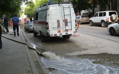 Прибывшие ремонтные службы выкачивают воду и из подвала: там расположена парикмахерская.