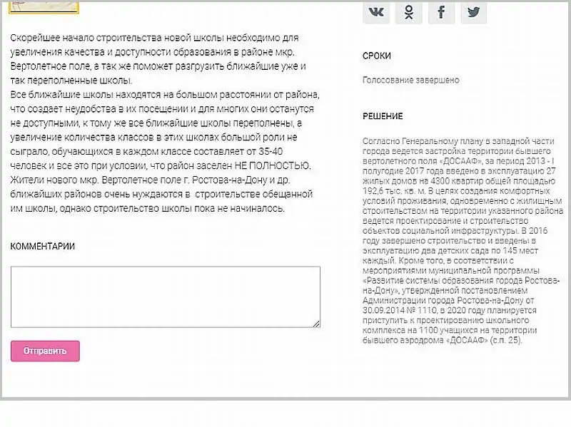 Показательно, как была рассмотрена инициатива о строительстве школы на Вертолётном поле. Власти сообщают, что аж в 2020 (!) году планируется приступить к проектированию (!) школьного комплекса на 1100 учащихся. Когда же школу всё-таки построят, неизвестно.