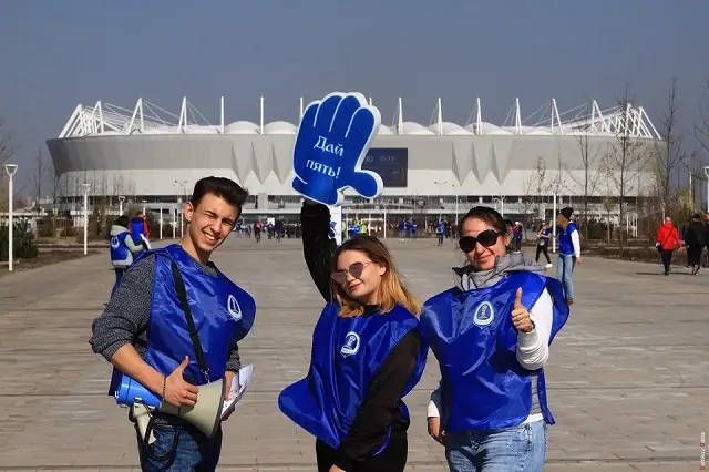 17:26. Здесь же всех встречают волонтёры, а перед входом проверяют. Всё строго, но культурно.