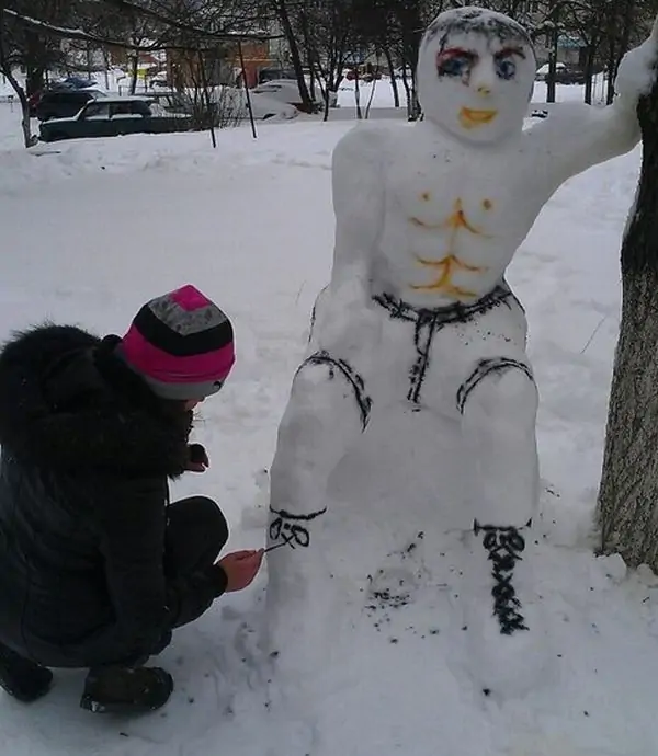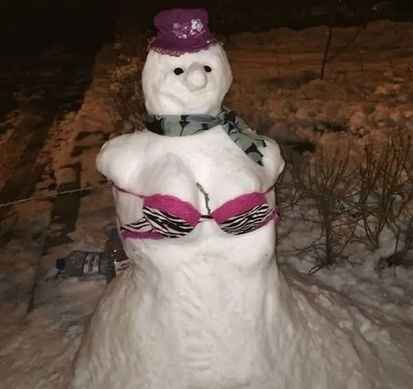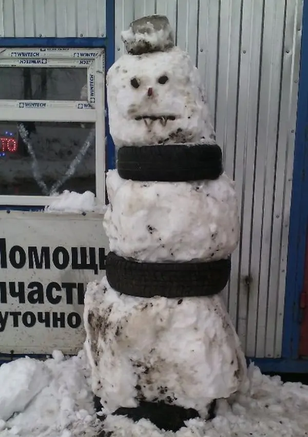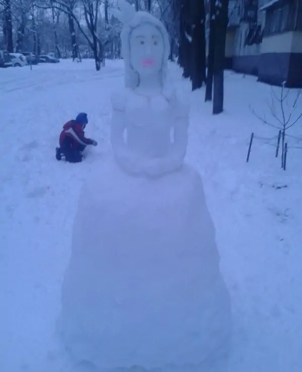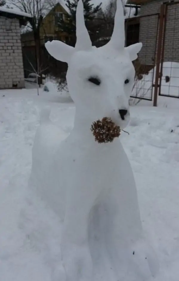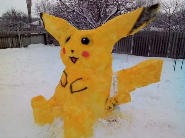 Особых похвал заслуживает снеговик, прототипом которого стал персонаж из мультика Пикачу. Автор покрыл скульптуру жёлтой краской из баллончика.