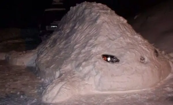 Не менее масштабным получился снеговик-черепаха. Под грудой снега легко просматривается Mazda.