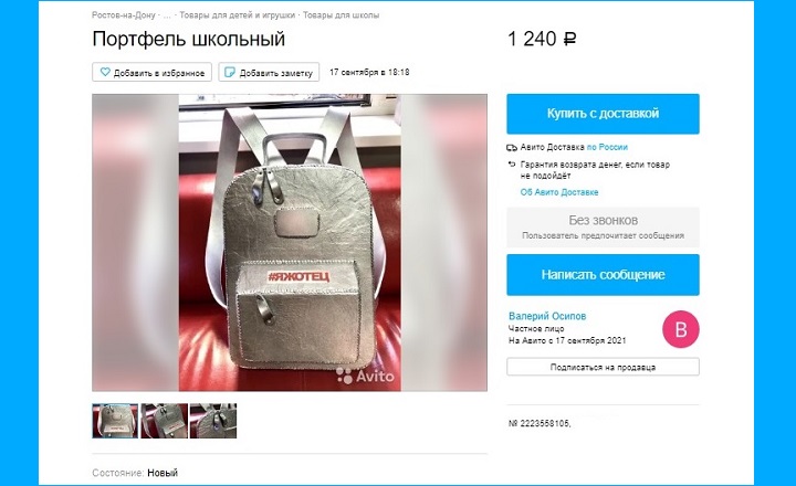 Забавное объявление было замечено на сервисе для размещения объявлений Авито: ростовчанин продаёт металлический рюкзак, который сделал для сына-школьника.