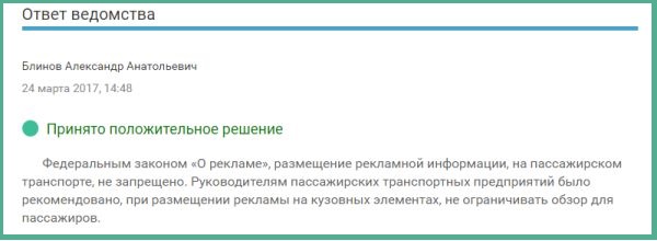 Потом Сергей Горбань исчез, не простившись, и ему на смену пришёл Виталий Кушнарёв. И тут выяснилось интересное: на самом деле никакого запрета на размещение рекламы на бортах общественного транспорта нет. Такой ответ был получен от администрации Ростова в сервисе «Благоустройство». Жалоба поступила на рекламу одного из банков, появившуюся на городских маршрутках. Ответ был получен следующий: «Федеральным законом “О рекламе” размещение рекламной информации на пассажирском транспорте не запрещено. Руководителям пассажирских транспортных предприятий было рекомендовано при размещении рекламы на кузовных элементах не ограничивать обзор для пассажиров».