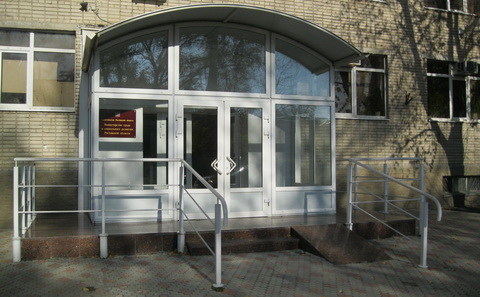 Впрочем, не прокуратурой единой... Так, у входа в областное министерство труда в Ростове есть, казалось, бы всё необходимое: покатый спуск, перила с одной стороны — бери да поднимайся. Только кнопки тревожной нет, дверь придётся открывать самому, отсутствуют и специальные резиновые коврики, а материал, из которого сделаны ступеньки, жутко скользкий.