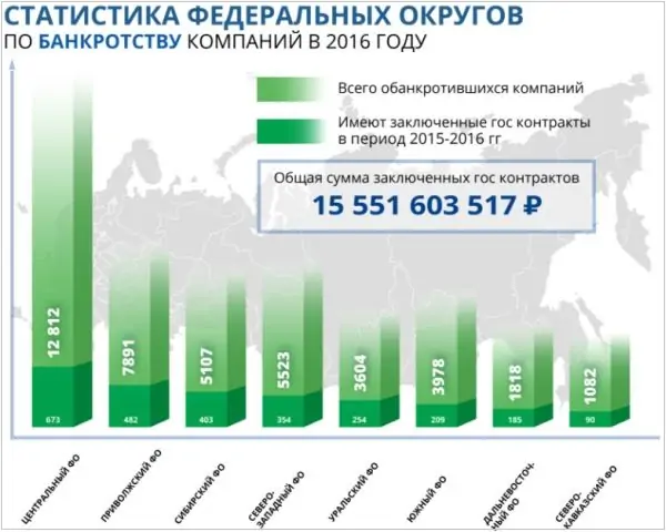 Согласно данным исследования, в 2016 году в Ростовской области обанкротились 1085 компаний. Из них 67 имели государственные контракты в 2015-2016 годах. По этому показателю регион занял шестое место в первой десятке российских регионов.