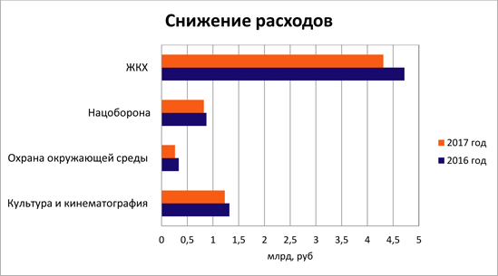 Так, финансирование жилищно-коммунального хозяйства будет снижено с 4,72 до 4,31 миллиарда рублей; культуры и кинематографии — с 1,32 до 1,23 миллиардов рублей; охраны окружающей среды — с 333 до 260 миллионов рублей. И даже на нацбезопасность, правоохранительную деятельность и нацоборону — с 870 до 820 миллионов рублей.