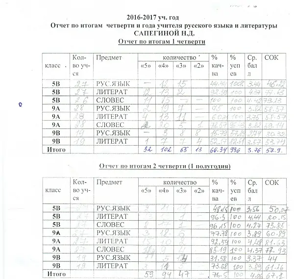 — Я организовала дополнительные бесплатные уроки, — продолжает Сапегина, — инициировала Совет профилактики, на который пришли родители вместе с детьми, там был выработан план подготовки к итоговой аттестации с контролем домашней работы и повторением теоретического материала. Это дало хорошие результаты: вторая четверть была окончена без двоек, несколько родителей выражали благодарность за мою работу.