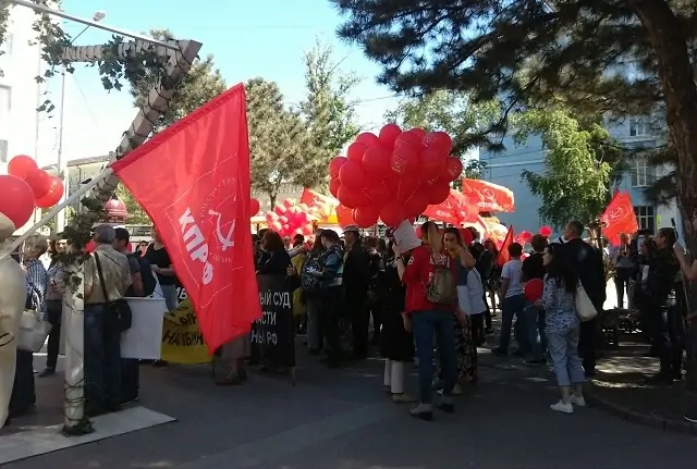 Оппозиционеры решили присоединиться к традиционному шествию, которое проводит на Первомай КПРФ. Маршрут начинался в районе Театральной и заканчивался на Будённовском.