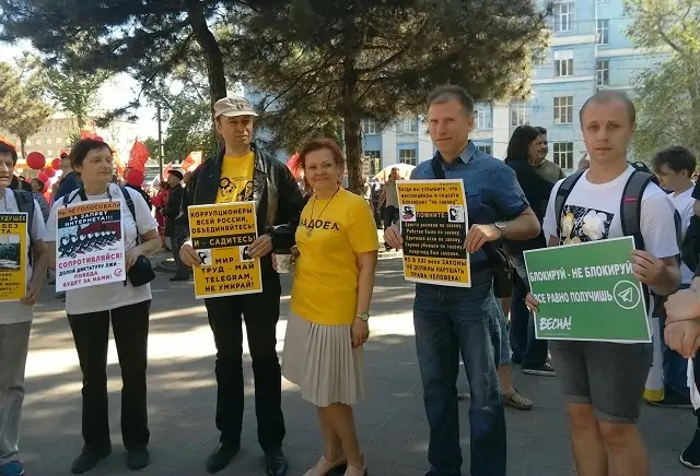 В Ростове члены движения «Солидарность», местного штаба Алексея Навального и других оппозиционных организаций 1 мая выступили против блокировки мессенджера Telegram.