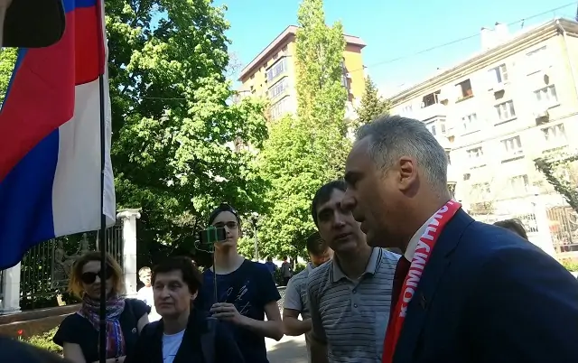 — Это власовский флаг, просьба убрать. Подойдите, возьмите у нас красные флаги. А то сейчас новое государство и Путин, хотя он вместе с Дмитрием Медведевым должен быть в другом месте. Под этим триколором «власовцы» участвовали в парадах во время ВОВ, так что в нашей колонне его не будет. Кстати, лозунги скандируем без мата, на плюём, бумажки не разбрасываем, шарики раздаём детям, — проинструктировал собравшихся депутат.