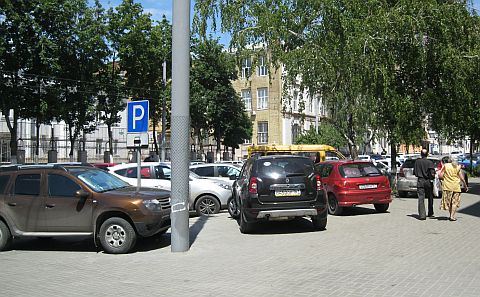 Там же, на Горького. Откровенное презрение к знаку, который указывает, каким образом позволено парковаться.