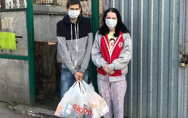 Юлии Цвиченко доставили набор необходимых продуктов, а женщина и трое её детей — 15-летняя Алиса, 12-летний Илья и пятилетний Дима — в свою очередь горячо поблагодарили волонтёров. Как и положено, общение из-за режима самоизоляции было коротким и проходило на положенной дистанции — 1,5 метра.