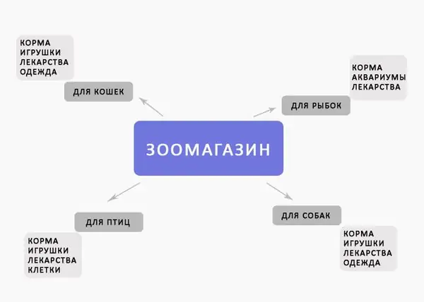 На первый взгляд кажется, что все логично. Однако, представьте себе аквариумиста, решившего поискать корм. Он увидит корма для кошек, собак, рыбок и птиц вперемешку, что очень сильно затруднит поиск. Поэтому логично изменить структуру следующим образом: