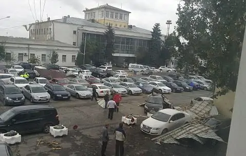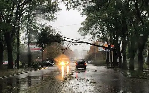 От непогоды пострадали также десятки машин, на которых обрушились сломанные ветки и стволы деревьев.