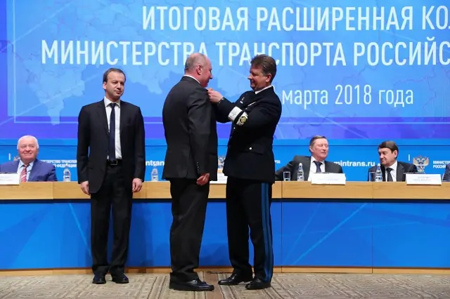 Церемония награждения прошла в здании правительства Российской Федерации, вручали почётные знаки зампред правительства Аркадий Дворкович и министр транспорта РФ Максим Соколов.