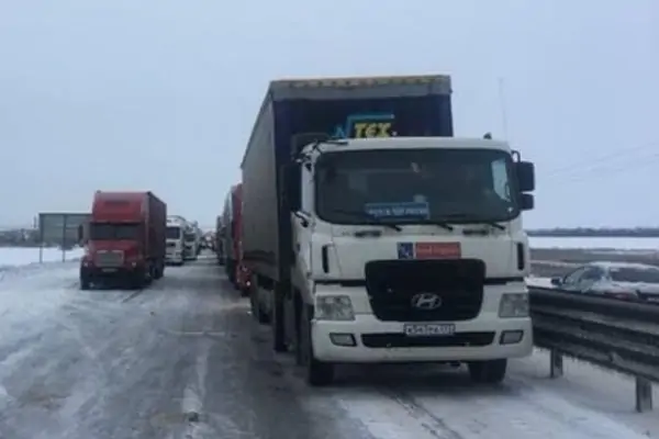 Проезд по трассе М4 «Дон» в районе посёлка Майский, неподалёку от Шахт, полностью заблокирован фурами. Об этом в соцсети написали автолюбители. По их словам, большегрузы буксуют на скользкой дороге и не могут сдвинуться с места.