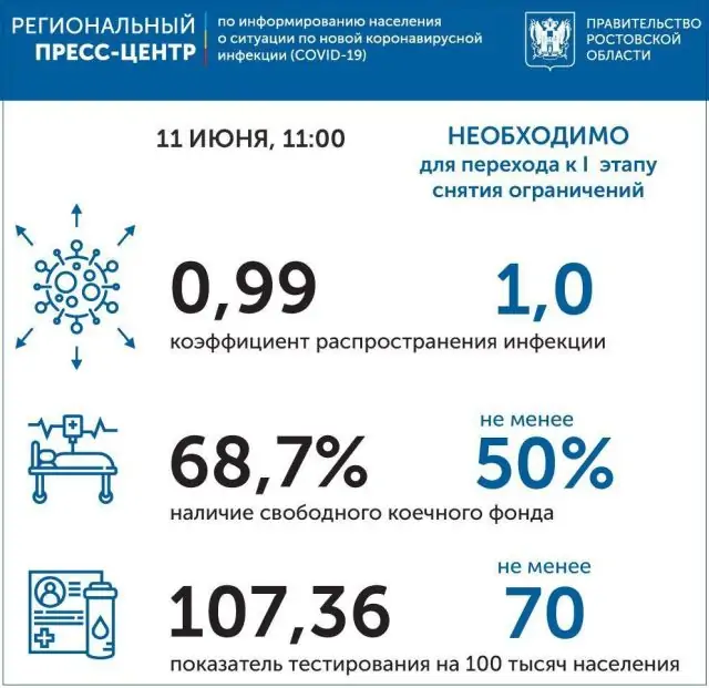 На утро 11 июня в тяжёлом состоянии находится 26 человек. Они подключены к аппаратам ИВЛ. За весь период пандемии в Ростовской области выздоровели 2702 человека. Лечение в стационарах проходят 714 пациентов. Загруженность подготовленного в регионе коечного фонда составляет 31%.
