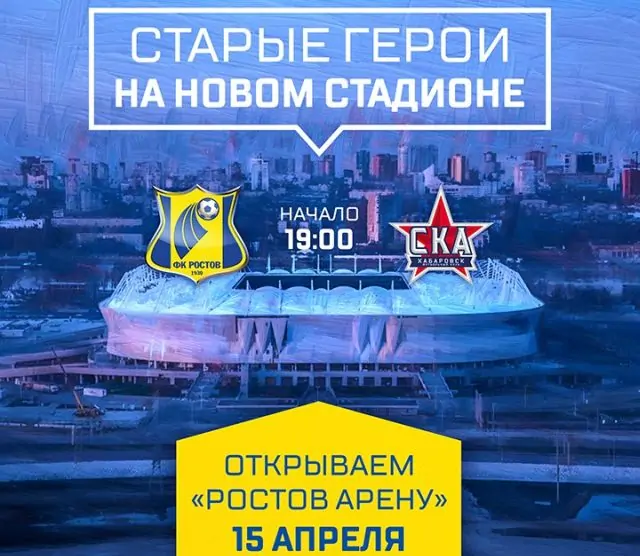 15 апреля футбольный клуб «Ростов» проведёт первый из трёх запланированных тестовых матчей на новом стадионе «Ростов-Арена». Жёлто-синие примут «СКА-Хабаровск». К сожалению болельщиков, на трибуны смогу попасть только 13 тысяч человек, хотя стадион вмещает 45 тысяч. По всей видимости, эта мера вынужденная, дабы протестировать совместную работу всех служб стадиона.