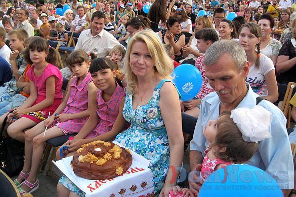 В этом году празднования по случаю Дня семьи были организованы необычно. Проехав в свадебных лимузинах по Большой Садовой, несколько десятков супружеских пар под дружные аплодисменты прошли по сцене с караваями в руках.