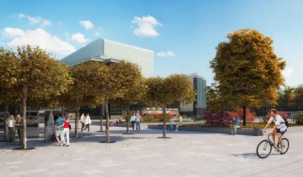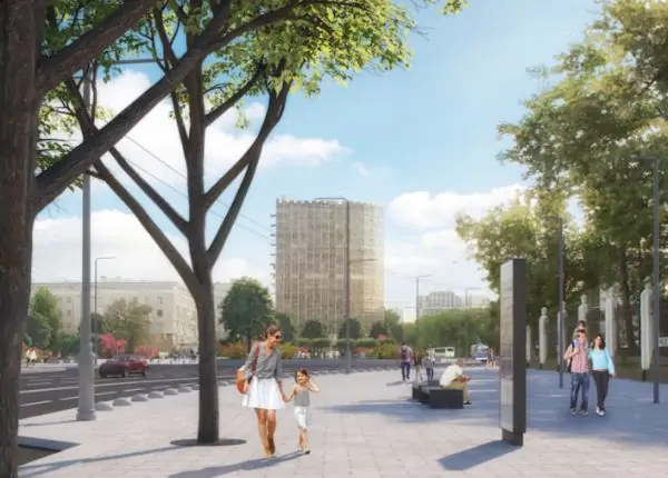 Как уже было сказано, тротуарная часть площади будет существенно расширена. На ней появятся лавочки и другая уличная мебель, а также озеленение, в том числе платановая аллея. Преобразить планируется как часть со стороны стелы, так и участок возле театра Горького.