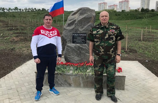 Олег Захаров и Николай Бритвин на открытии Рощи Героев в микрорайоне Суворовский