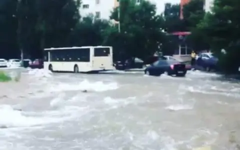 «На Орбитальной опять потоп. Основной порыв в районе дома 66/1, всё, что ниже, затопило наглухо. Ни в коем случае не надо ехать на авто, несёт камни и ветки очень приличного размера. Глубина «реки» 30-40 сантиметров», — написал на автофоруме ростовчанин под ником Крикет.