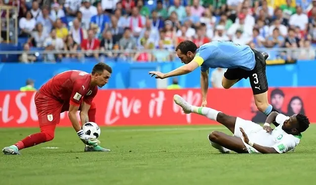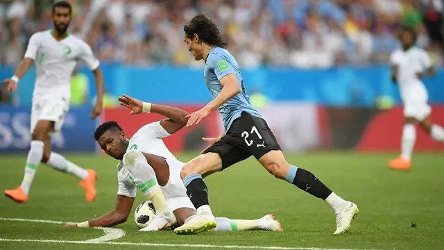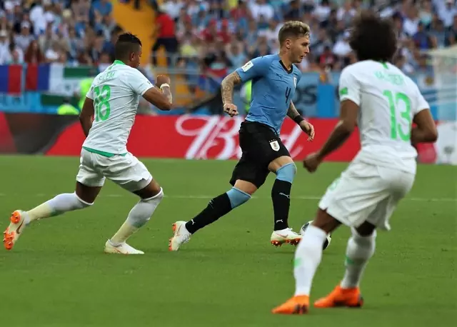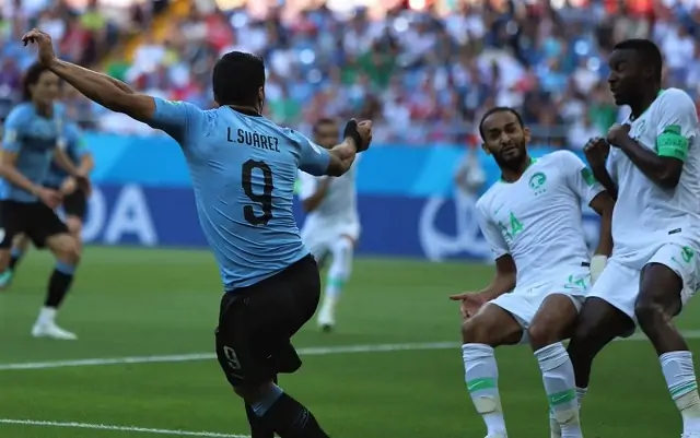 20-я минута. В игре случилось затишье, которое прервала контратака уругвайцев. Родригес и партнёры перемудрили, отдав мяч Аль-Увайсу.