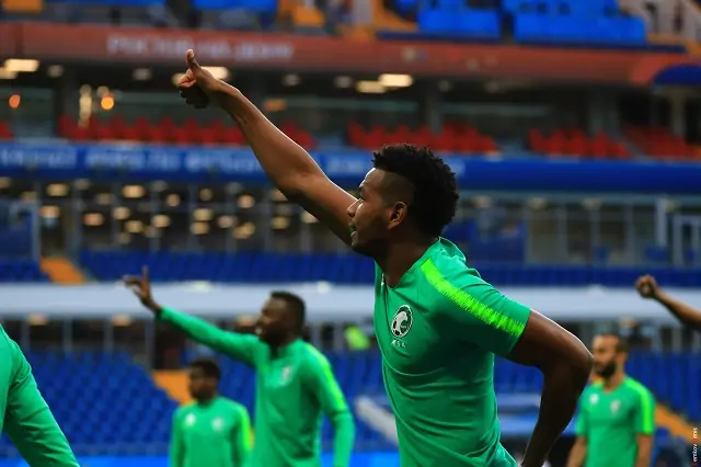 1-я минута.Саудиты развели мяч и попробовали сразу развести соперника. Пока не получилось.