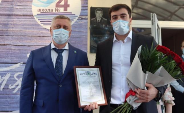 Геннадий Павлятенко вручил Ниязу Ильясову сертификат номиналом 500 тысяч рублей, поощрив призёра за большой личный вклад в развитие спорта на территории города и развитие олимпийского движения.