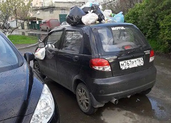 В Батайске на Северном очередной легкомысленный автомобилист стал жертвой «правдорубов». На этот раз за неправильную парковку пакетами с мусором «наградили» водителя Daewoo Matiz, который припарковал машину, перегородив подъезд к мусорным бакам.