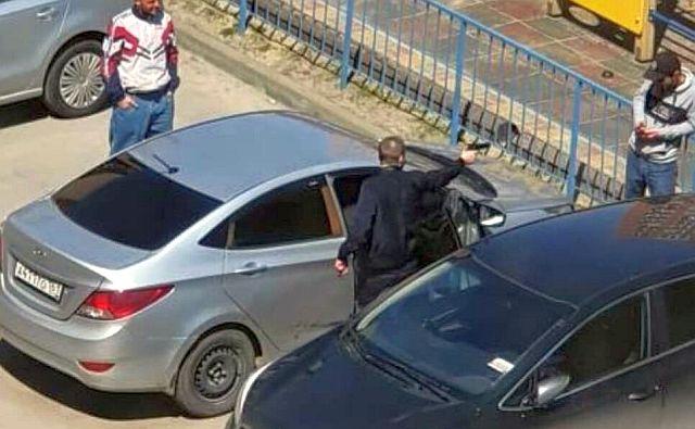 В ролике с места происшествия видно, что мужчина, плохо стоящий на ногах, попытался сесть за руль машины. Однако знакомые не дали ему этого сделать. В какой-то момент дебошир достал пистолет и начал им размахивать. Девушка попыталась успокоить молодого человека, но он, не слушая её, продолжил размахивать пистолетом и кричать.