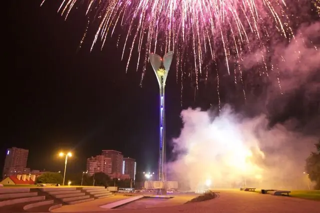 Под завершение выступления группы «Серебро» в небе над городом прогремели сотни залпов салюта — всего их было более 60 видов — «Рубиновые хризантемы», «Серебряные хвосты» и другие.