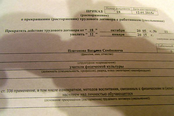 Примечательно, что Василий Семёнович не отказывается от того, что он толкнул ученика, но категорически не согласен с формулировками, которые значатся в приказе. Напомним, что в документе директор указывает статью 336 «Применение, в том числе однократное, методов воспитания, связанных с физическим и (или) психическим насилием над личностью обучающегося».