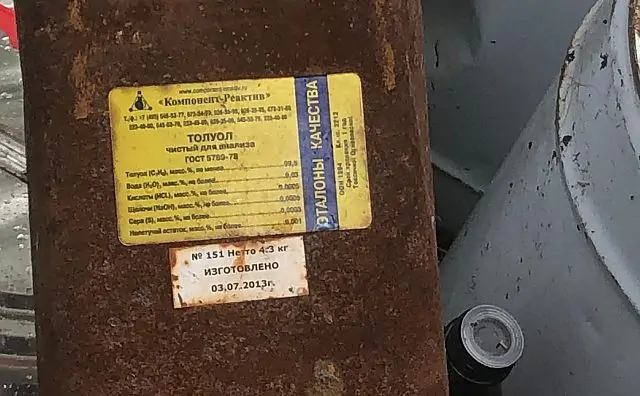 Среди медицинских отходов был обнаружен нонан, применяющийся как компонент моторного и ракетного топлива, в качестве растворителя. Работать с ним можно только в противогазе. Также в бочках был декалин — воспламеняющаяся жидкость, которая вызывает тяжёлое отравление при вдыхании. На части ёмкостей были пометки о содержащемся внутри толуоле. Это вещество вызывает серьёзные заболевания нервной системы и кровообращения. По поляне были разбросаны полупустые мешки с аммиачной селитрой, триполифосфатом натрия, бутылки с ацетоном, гептаном и неизвестными веществами. Некоторые ёмкости стояли открытыми.