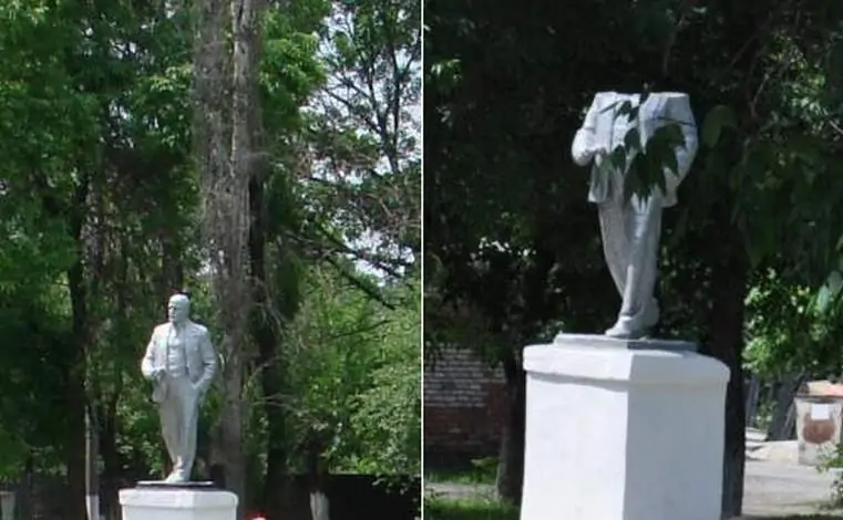«Хотя на восстановление его первоначального вида не требовалось больших средств и вложений, но всё таки памятник В. И. Ленину был демонтирован, а на месте его был установлен гипсовый бюст, который открыли в день пожилых людей в 2012 году. Однако в конце сентября 2014 года и этот бюст В. И. Ленина неожиданно исчез. В настоящее время площадь, где проходили все торжественные мероприятия, и где был установлен памятник В. И. Ленину, в канун 97-ой годовщине Великой октябрьской революции теперь выглядит и олицетворяет разруху, пустоту и забвение. В селе сложилась странная ситуация, когда люди бьют тревогу о пропаже, а администрация сельского поселения и глазом не моргнет, не спешит заявлять о пропаже, даже несмотря на тот факт, что бюст на балансе поселения. К сожалению, но мы уже видели, к чему привела борьба с памятниками в Украине», — сообщил Анатолий Показанов.