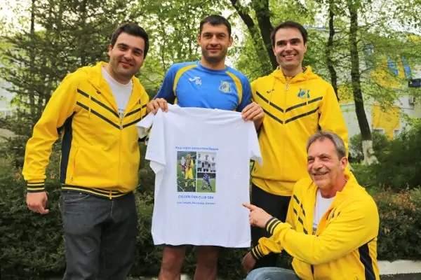Закончилась встреча Александра Гацкана с итальянскими болельщиками ФК «Ростов» совместным фотографированием и пожеланием удачи нашей команде в предстоящей игре с «Тереком», которая начнётся в 19:00 2 мая.