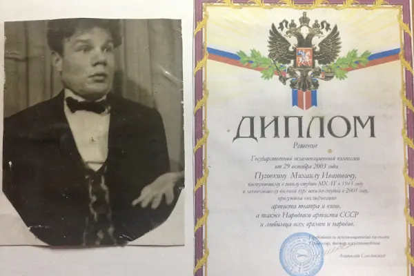 Удивительно, но диплом об окончании студии МХАТ Пуговкин получил только в 2003 году — спустя 60 лет после поступления! А причина проста: в 1947 году студент Пуговкин не сдал историю марксизма-ленинизма, да так и остался без диплома. Но его блестящей карьере это ничуть не помешало.