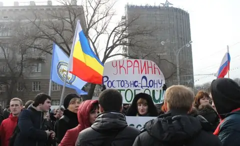 Митинг в поддержку русскоязычного народа Украины длился без малого два часа. Десятки политических деятелей обращались со сцены к собравшимся. Они говорили о том, что жители Ростовской области готовы оказывать всевозможную помощь братским народам. Однако на деле из 11 тысяч собравшихся на Театральной площади (по официальным данным полиции, именно столько людей собрались на митинге) удалось найти всего нескольких человек, которые без плакатов и по собственной воле пришли поддержать украинцев.{{voter}}