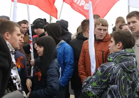 — Вчера в школу пришло письмо, согласно которому из нашей школы и от всех других бюджетных организаций на митинг должны приехать по 30 человек. Нам за это пообещали по одному отгулу. Хотя нам всегда обещают и не дают. А моей коллеге из соседней школы сказали наоборот: если она придёт на митинг, то не заработает прогул. Скажу вам больше. Нам изначально сказали для большего количества взять наших учеников. Разумеется, родители тут же запротестовали, а я сказала директору, что не собираюсь брать на себя такую ответственности и стоять со школьниками в многотысячной толпе, — разоткровенничалась учительница.