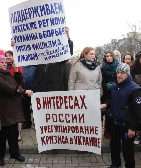 — Я живу в соседнем доме и пришла поддержать все народы, которые сейчас страдают от политических игр в Украине, — сказала журналисту donnews.ru пенсионерка Екатерина Ковалевская. — Я не рисовала плакаты, моё присутствие здесь — это уже поддержка. И мне больно смотреть, как на митинг согнали студентов, которые даже не в курсе того, что происходит на Украине. А эти несчастные бюджетники, которых согнали сюда… Вот если бы митинг назначили на выходные дни и не гнали людей из-под палки, я уверена, что тогда бы пришло ещё больше народа. И это можно было бы назвать действительно митингом в поддержку — откровенным и чистым. А сейчас иначе как показухой я это действие назвать не могу.