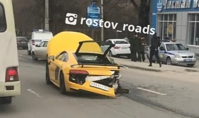 В Ростове в среду, 6 марта, около 16:00 произошло ДТП, участники которого чудом остались живы. Очевидцы сообщили, что жёлтая Audi R8, которая регулярно «засвечивалась» в различных группах соцсети, влетела под военный «Камаз» на улице 56-й армии.