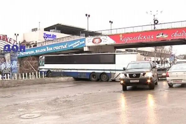 В понедельник, 26 января, около 06:00 в Ростове на пересечении проспекта Будённовского и улицы Береговой пассажирский автобус Volvo Москва — Ростов едва не въехал в супермаркет «Тихий Дон».