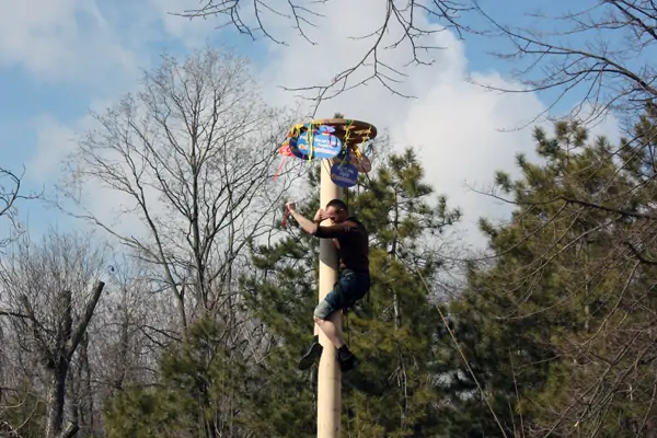 Ростовские мужчины же с удовольствием испытывали свою физическую подготовку в традиционном масленичном развлечении — пытались забраться на высокий столб за подарками. Удавалось это не всем, но азарта не убавляло.