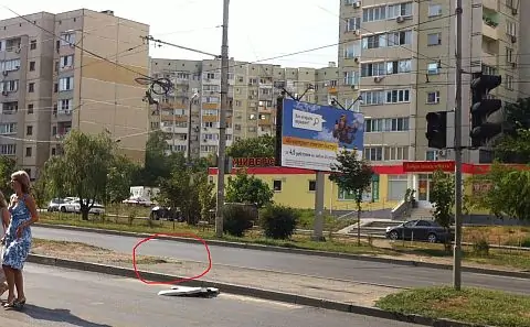 — Я переходил дорогу на Таганрогской в сторону ТЦ «Семь Ветров», — рассказал Алексей donnews.ru. — Перешёл половину дороги, посмотрел направо и увидел, как уже почти рядом со мной огромный грузовик перелетает через бордюр, сносит столб со светофором и летит на меня. Я успел выпрыгнуть вперёд уже, судя по всему, в миллиметрах, так как правую ногу в прыжке успела зацепить то ли шина, то ли бампер. Думаю, сбил бы насмерть. А так только ступню ушиб.