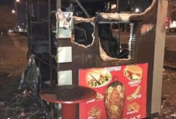 Сгоревший ларёк на Западном, фото из соцсетей