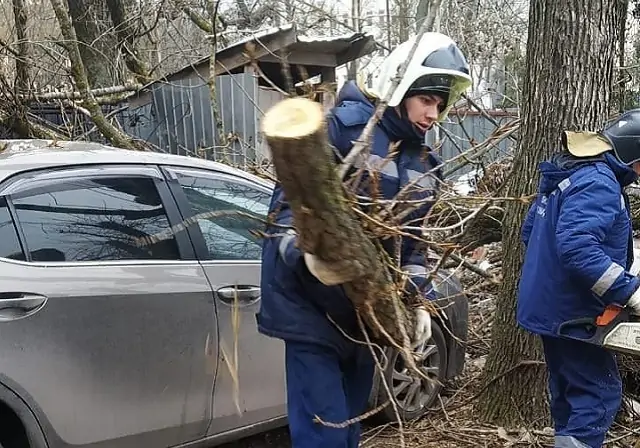По данным спасателей, владелец припарковал машину под ветхими деревьями. В какой-то момент одно из них, к счастью далеко не самое толстое, рухнуло на крышу машины. В итоге для того, чтобы его убрать, пришлось вызывать спасателей. Пострадавших нет.