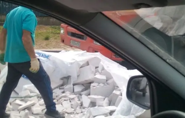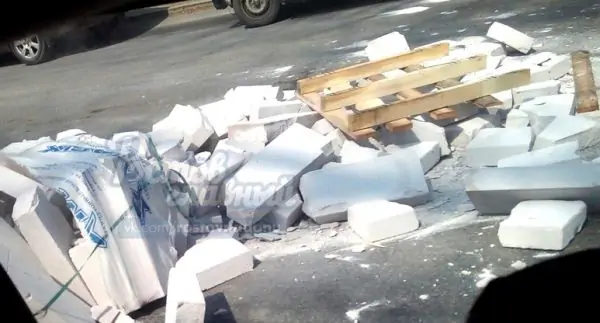 Водитель «Газели» не сразу решил убрать за собой разбившиеся блоки. На место происшествия он вернулся спустя час и принялся за уборку.